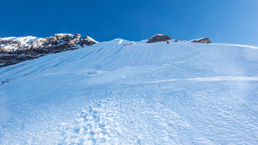 Over several rotations you will establish higher camps, build familiarity with the route, and grow comfortable moving efficiently at altitude. The climbing is steep, exciting, and deeply rewarding โ granite rock, snow ridges, and fixed rope sections combine to create one of the most iconic alpine routes in the Himalaya.