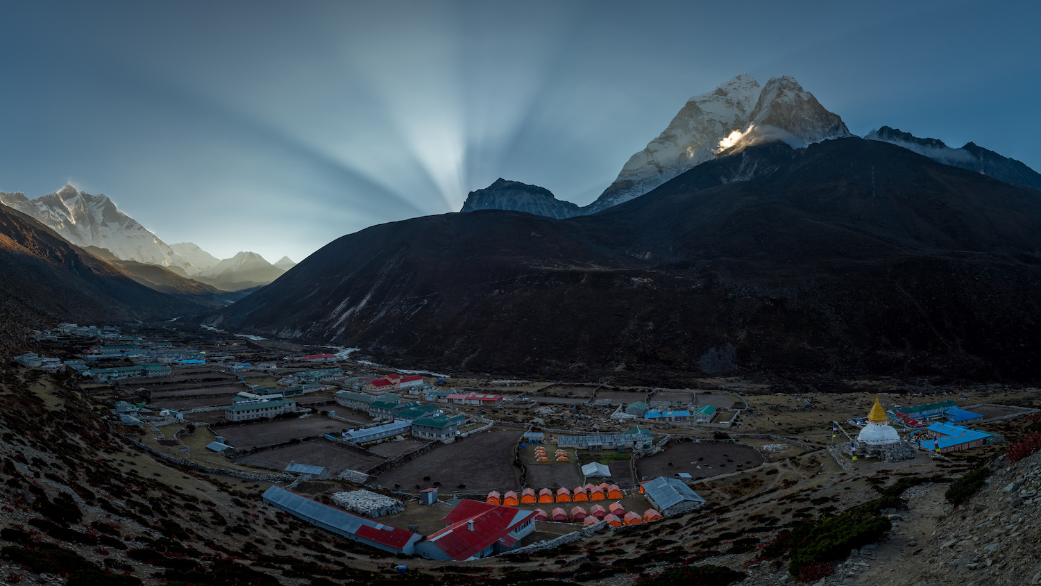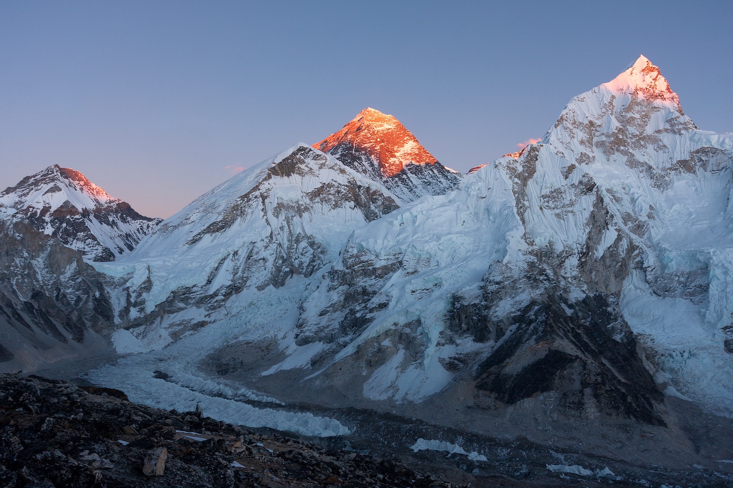 Make an early morning ascent of Kala Patthar to witness a magnificent sunrise over Everest and surrounding peaks. Capture unforgettable panoramic photographs and enjoy the peaceful mountain environment. Descend to Lobuche for rest and recovery. Overnight at E-co Friendship Lodge.