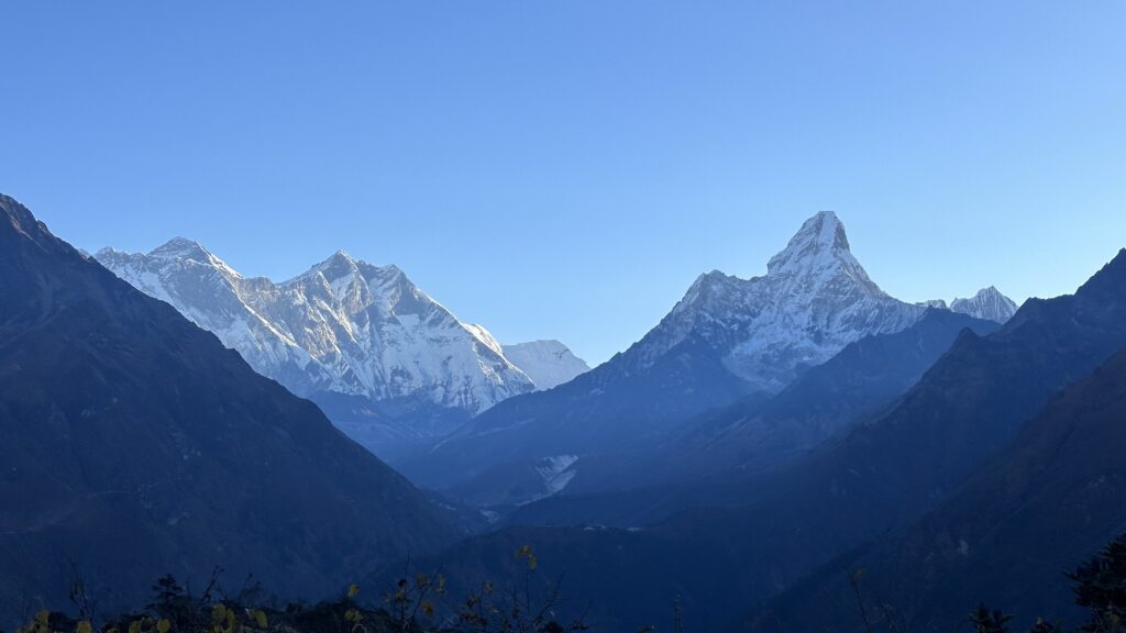 Today is an essential acclimatisation day in and around Namche Bazaar now that we’ve crossed the 3000m mark. We set off early for a rewarding walk up to the Hotel Everest View, where traditional panoramas of Everest, Lhotse, and Ama Dablam rise magnificently across the valley. Spending an hour or more here at 3800m provides a valuable boost to our acclimatisation and prepares us well for the higher altitudes ahead. Afterwards, we visit the Namche Bazaar Monastery to receive a blessing from the Buddhist Lama – an experience that adds a special cultural richness to the journey.